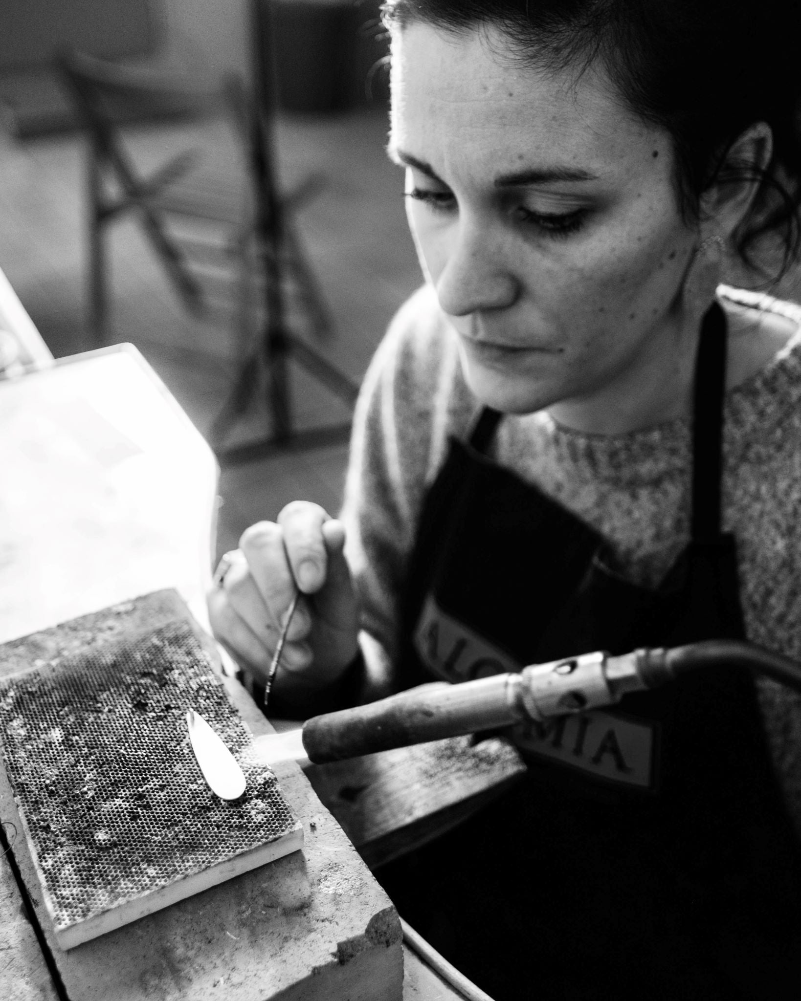 In einer Werkstatt in Valenza trifft jahrhundertealtes Goldschmiedehandwerk auf flüssiges Glas und zenitgenössische Pop-Ästhetik. Chiara Bello verwandelt Tierformen in leuchtende Schmuckobjekte – vergoldet, emailliert, gebrannt, geschliffen. Ihre Ringe und Halskette erzählen von Feuer, Farbe und piemontesischer Goldschmiedekunst.