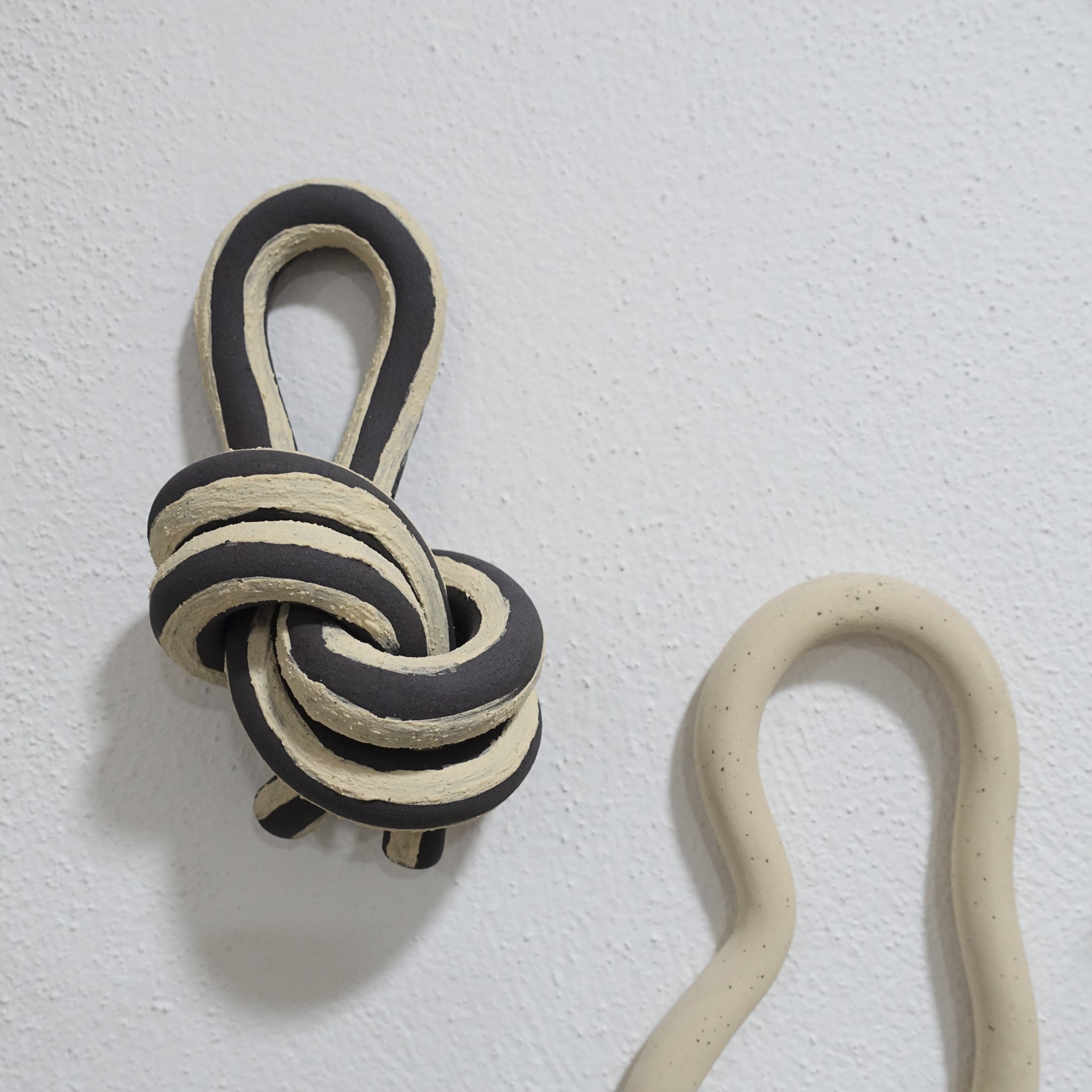 MINI STRIA ist eine Knotenskulptur für die Wand – und für alles, was sich sonst noch verheddern darf: Formen, Gedanken, Gefühle. Aus Keramik von Hand gefertigt, erinnert das Objekt an Seil, Schlange oder Schmuckstück. Nur eben aus Ton.