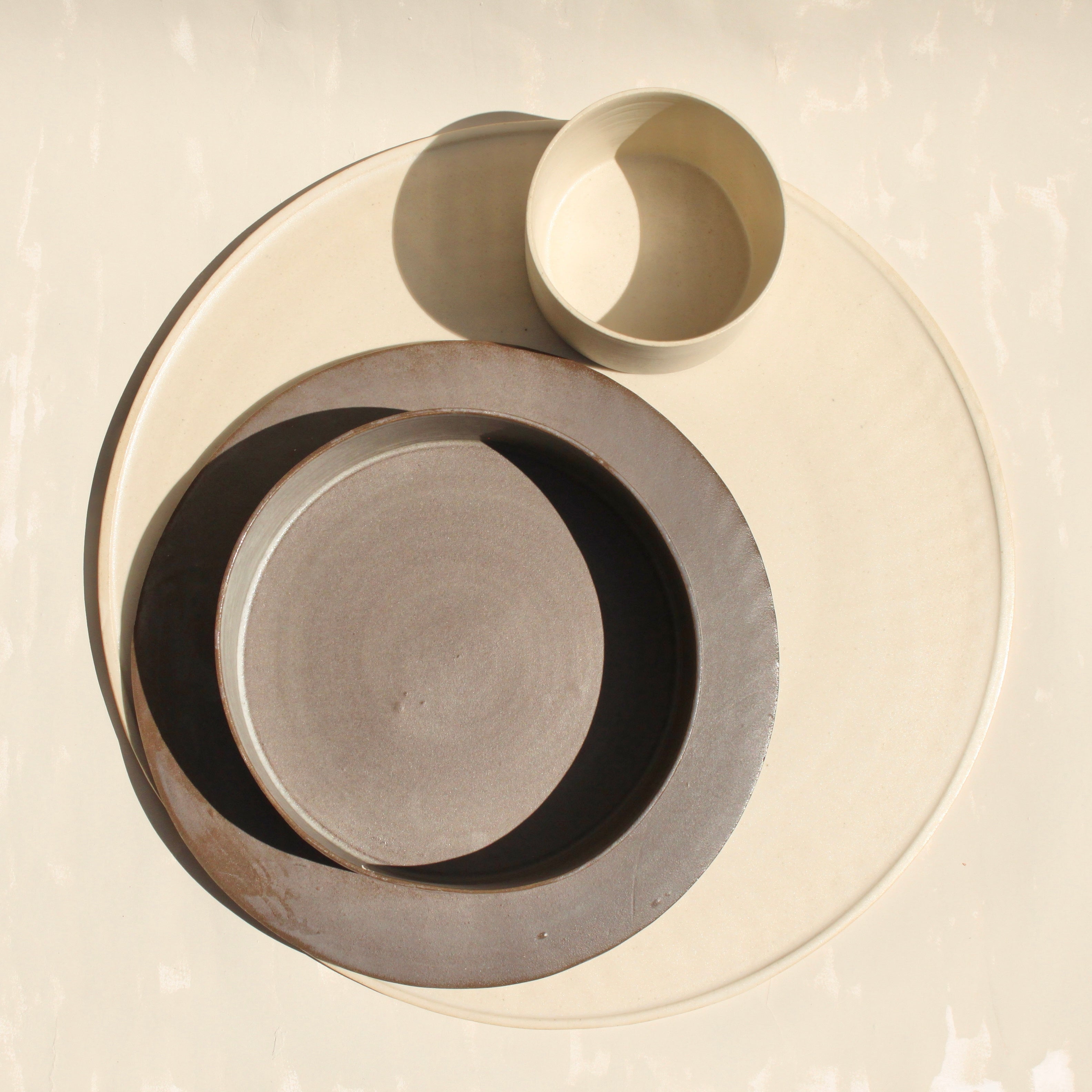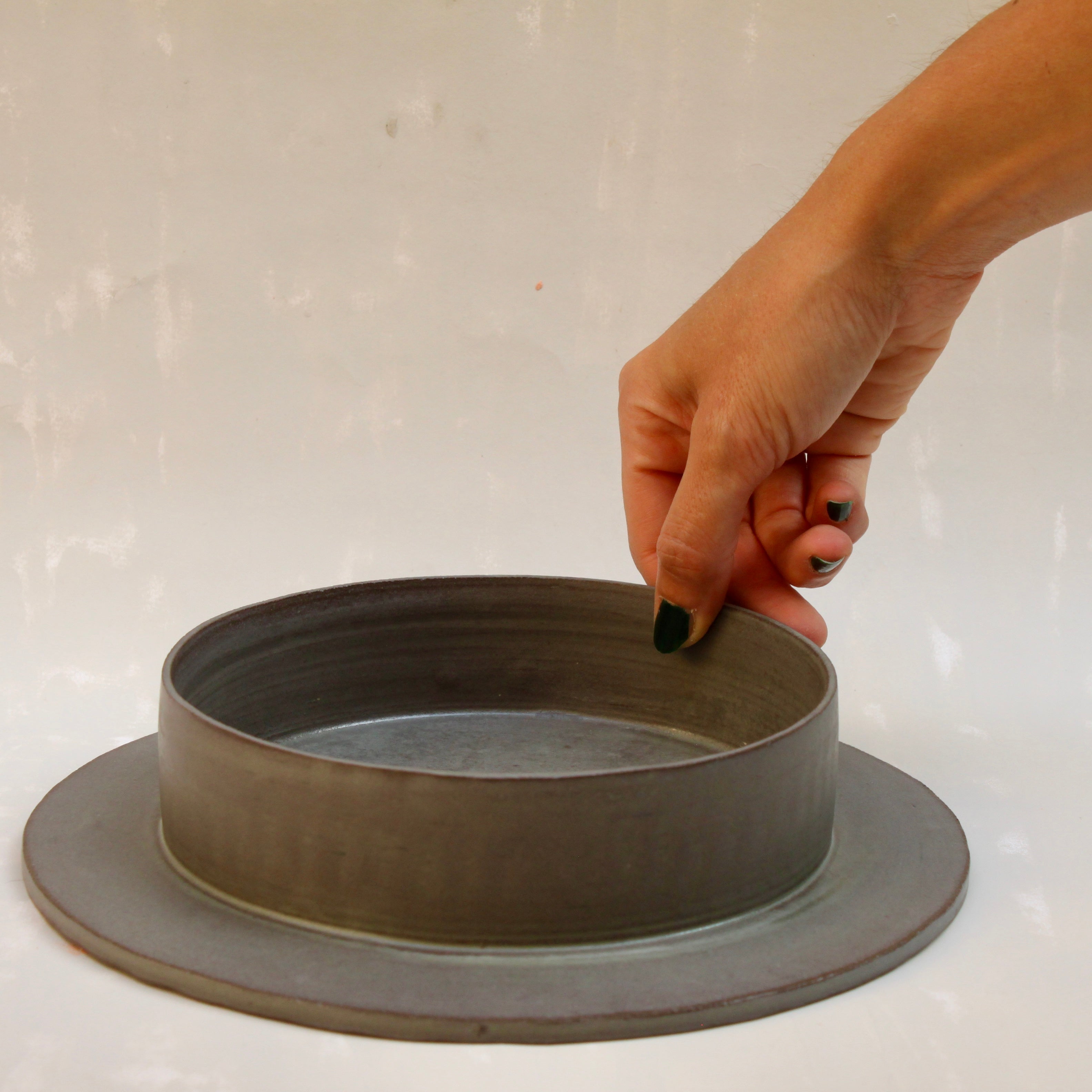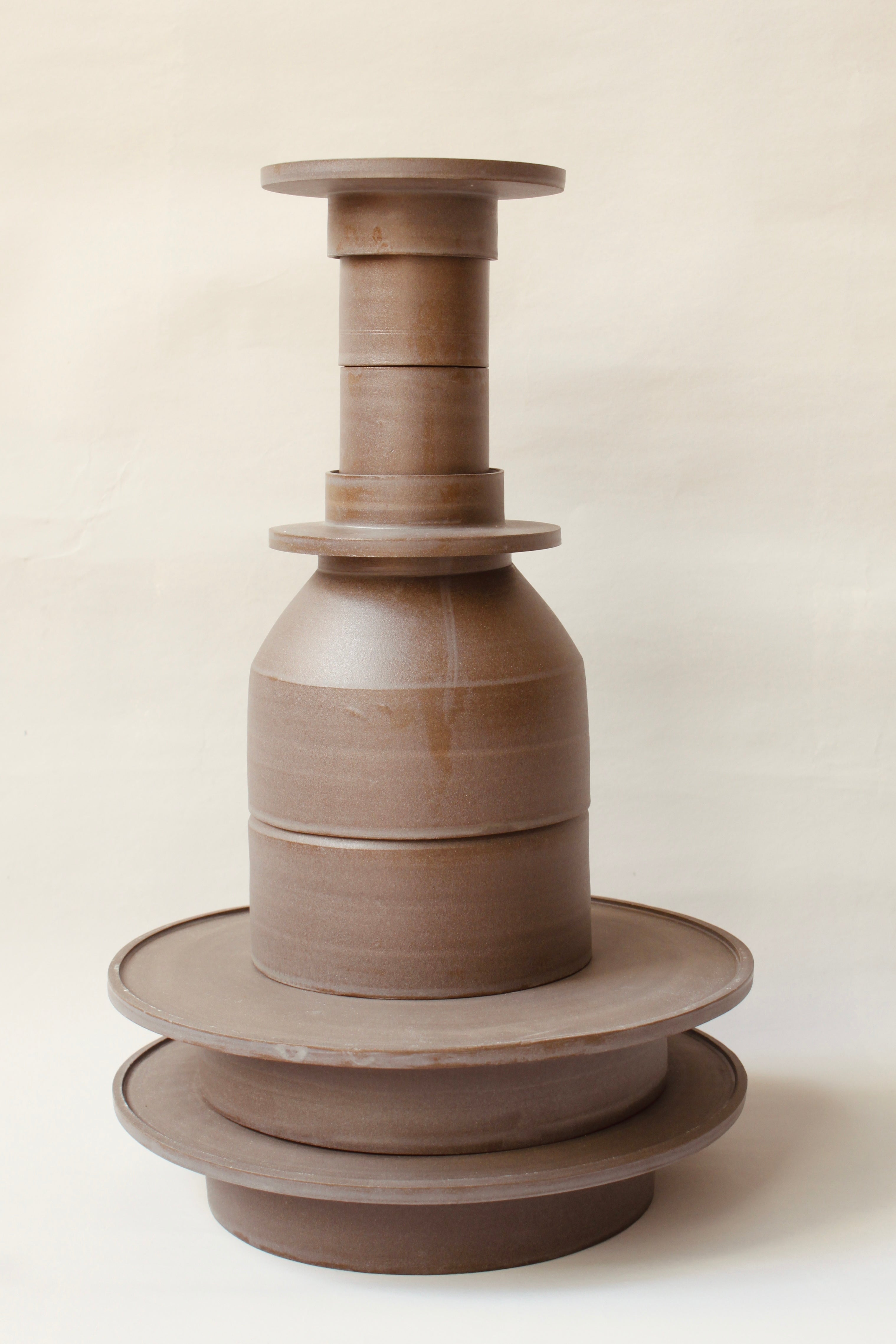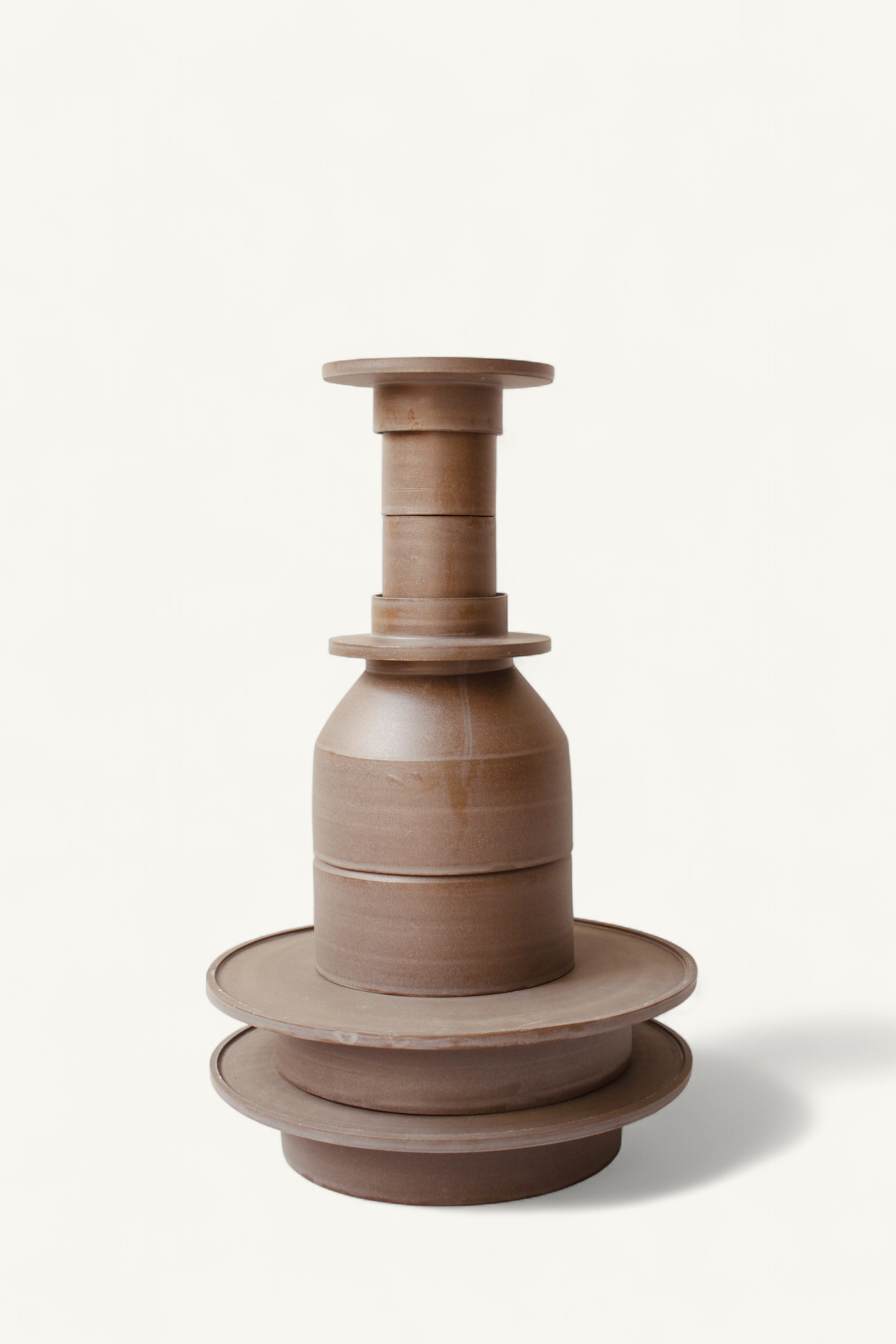 Charakteristisch für ihre Arbeiten ist ein modulares Prinzip: Jedes Objekt steht für sich – und ist gleichzeitig Teil eines größeren Zusammenhangs. So lassen sich ihre Stücke zu kleinen Skulpturen arrangieren oder verändern je nach Verwendung ihre Funktion. Ein Teller wird zum Sockel, eine Tasse zum Deckel, eine Karaffe zur Komposition aus Einzelteilen. Diese Vielschichtigkeit verleiht Martinas Keramiken eine stille Komplexität – formschön, funktional und überraschend flexibel.