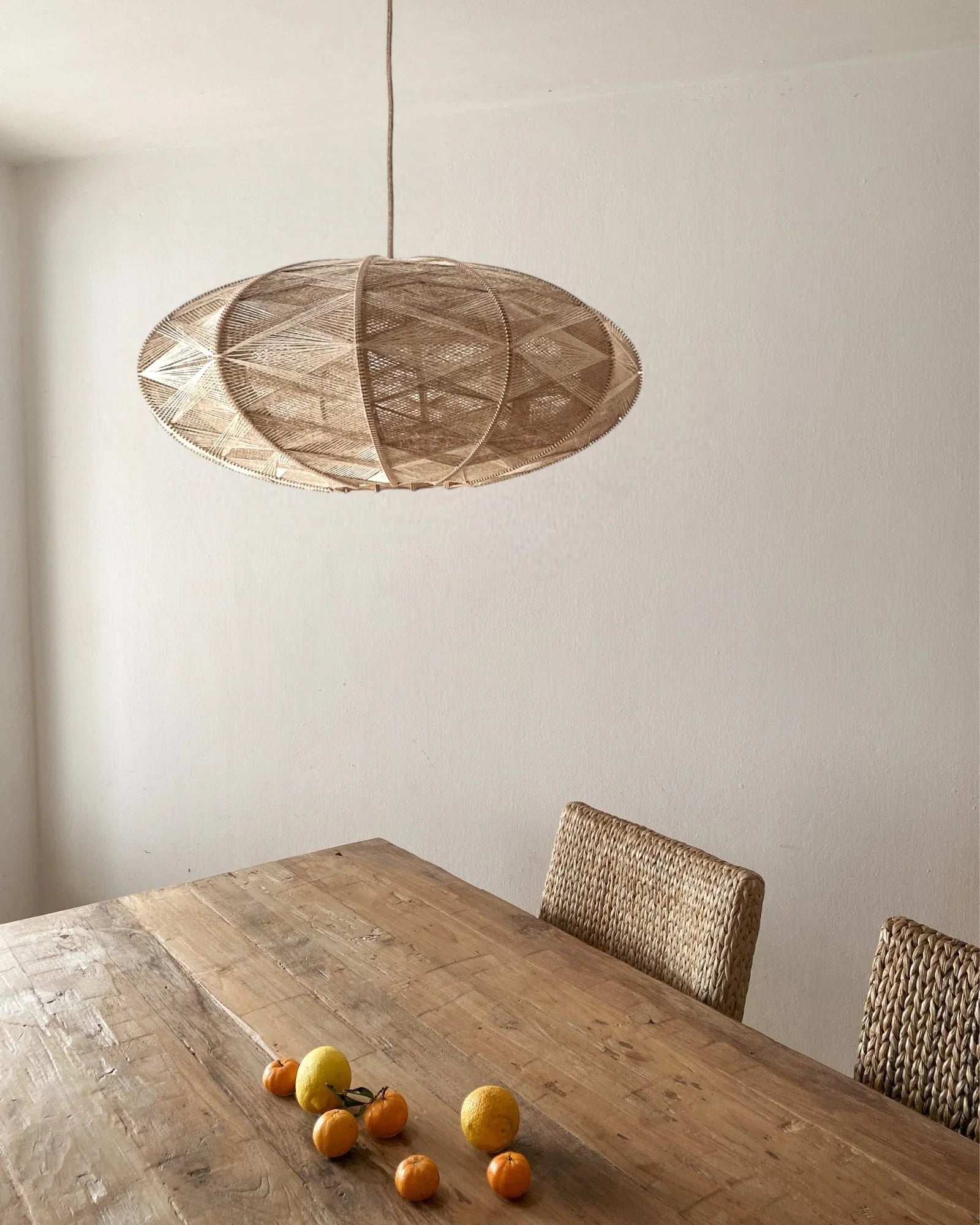 Mit ihrer elliptischen, organischen Form, der architektonischen Konstruktion des Rahmens und dem geometrischen Webmuster ist LUA NATUR ein moderner Raumakzent und eine Hommage an die traditionsreiche portugiesische Handwerkskunst.